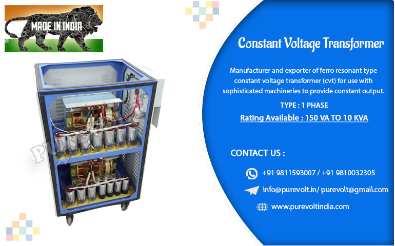 Purevolt's Constant Voltage Transformer has been designed to give you total protection against power related problems. Constant Voltage Transformer effectively regulates voltage variation, suppresses transients (ISOLATION) and bridges the short interruptions/dips. We also export these Constant Voltage Transformers to Various countries.